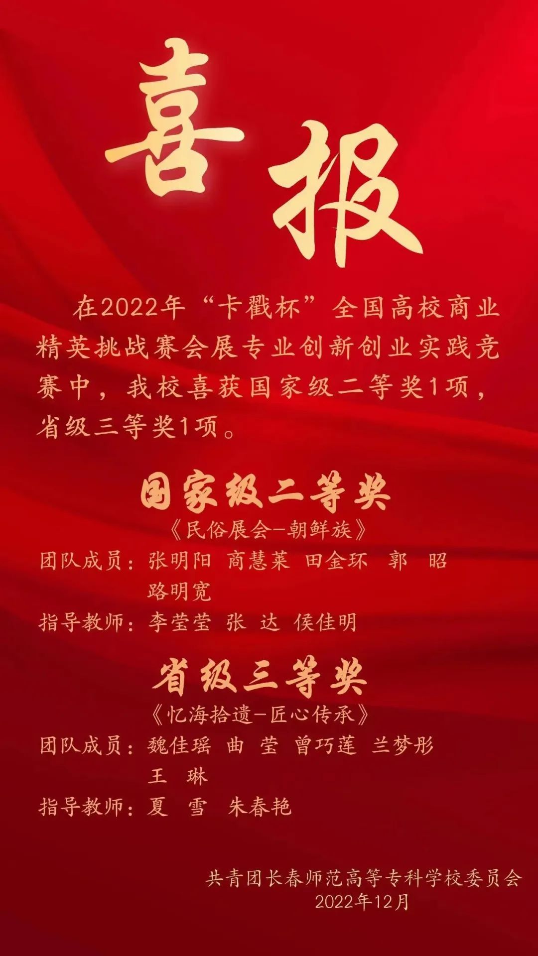 近日,我校在2022年第十六届全国高校商业精英挑战赛会展专业创新创业实践竞赛中喜获佳绩,经过网络评审、线上答辩汇报评审,成功斩获高职组国家级二等奖一项,省级三等奖一项。