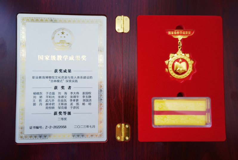 根据教育部公布的《关于批准2022年国家级教学成果奖获奖项目的决定》(教师〔2023〕4号),学校参与申报的教学成果《职业教育博物馆文化资源与育人体系建设的“吉林模式”探索实践》荣获2022年职业教育类国家教学成果奖二等奖,实现学校国家级教学成果获奖方面零的突破。此次国家级教学成果奖中共评出职业教育类获奖成果572项,其中吉林省有9项成果获得二等奖。